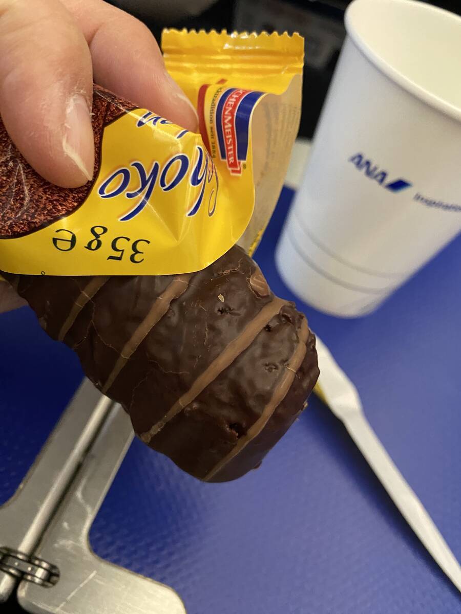 離陸後、間もなくするとドリンクとともにANAの定番スナック、おかきが配られました。